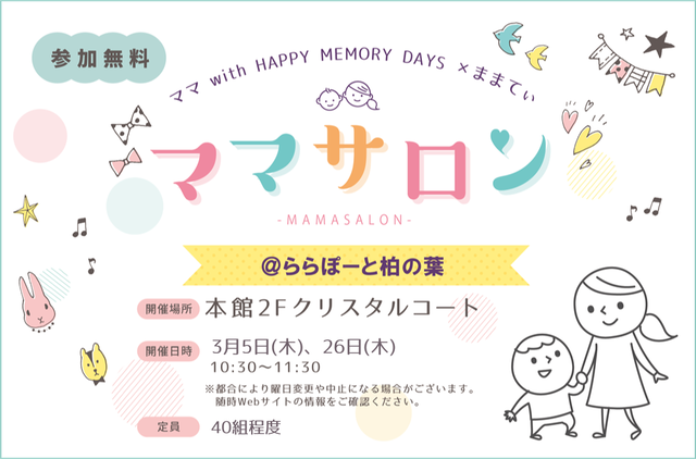 2月12日(木)、19日(木)に「ママサロン@ららぽーと柏の葉」を開催しました。